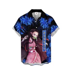 Chemise hawaïenne Demon Slayer Nezuko Lys araignée bleu – Maison Otaku
