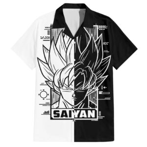 Chemise hawaïenne Goku Dragon Ball noir & blanc abstrait – Maison Otaku