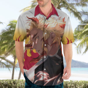 Chemise hawaïenne Kyojuro Rengoku Demon Slayer classique – Maison Otaku
