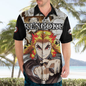 Chemise hawaïenne Rengoku Demon Slayer classique – Maison Otaku