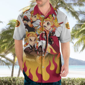 Chemise hawaïenne Kyojuro Rengoku Pilier de la flamme Anime – Maison Otaku