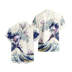 Chemise hawaïenne Pokémon Mewtwo Vague de Kanagawa – Maison Otaku