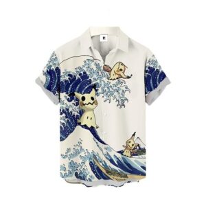Chemise hawaïenne Pokémon Mimikyu Vague de Kanagawa – Maison Otaku