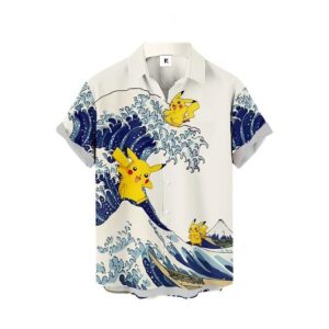 Chemise hawaïenne Pokémon Pikachu Vague de Kanagawa – Maison Otaku