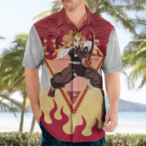 Chemise hawaïenne Kyojuro Rengoku V3 Demon Slayer Anime – Maison Otaku