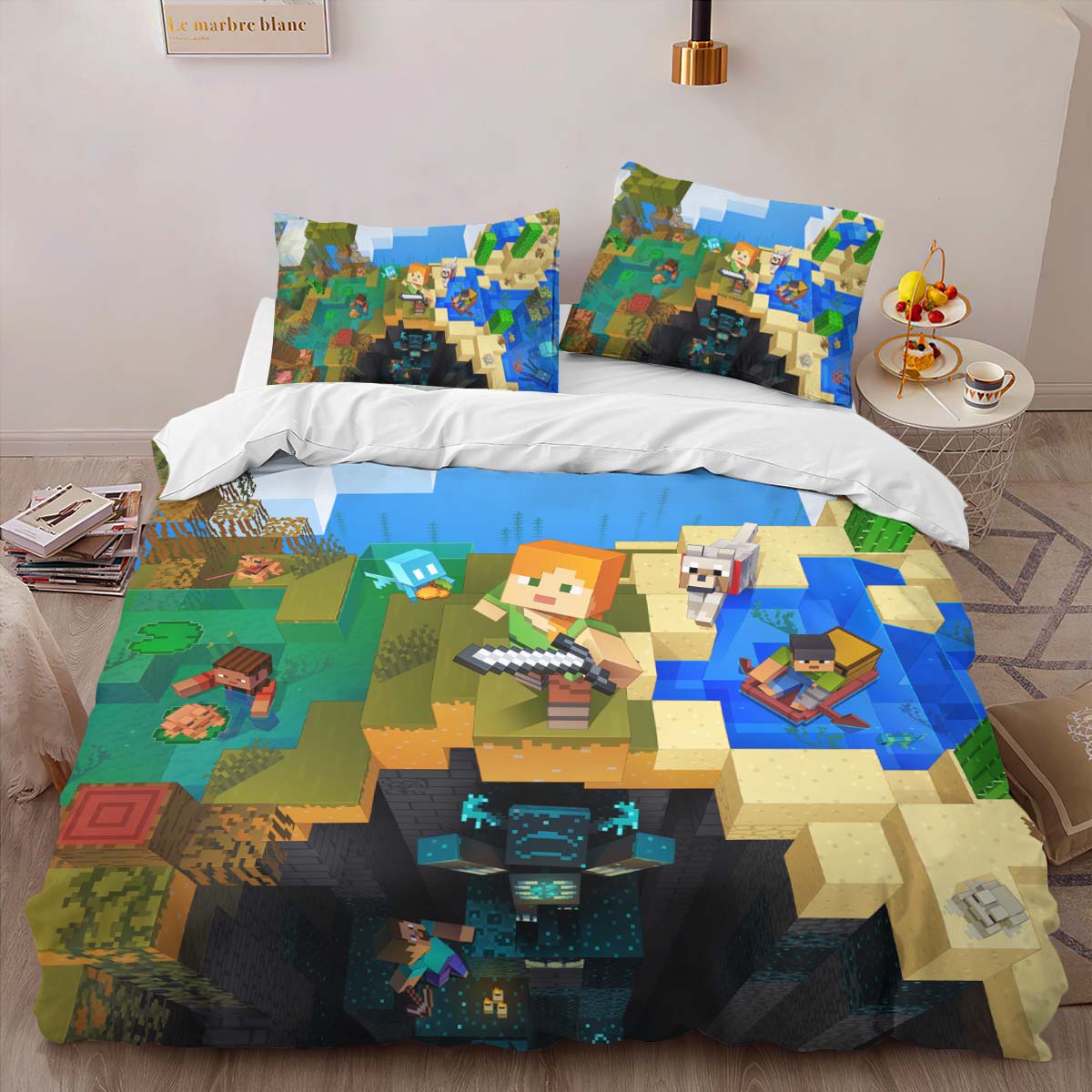Housse De Couette Minecraft Multi-Biome Parure de lit Ensemble De Literie