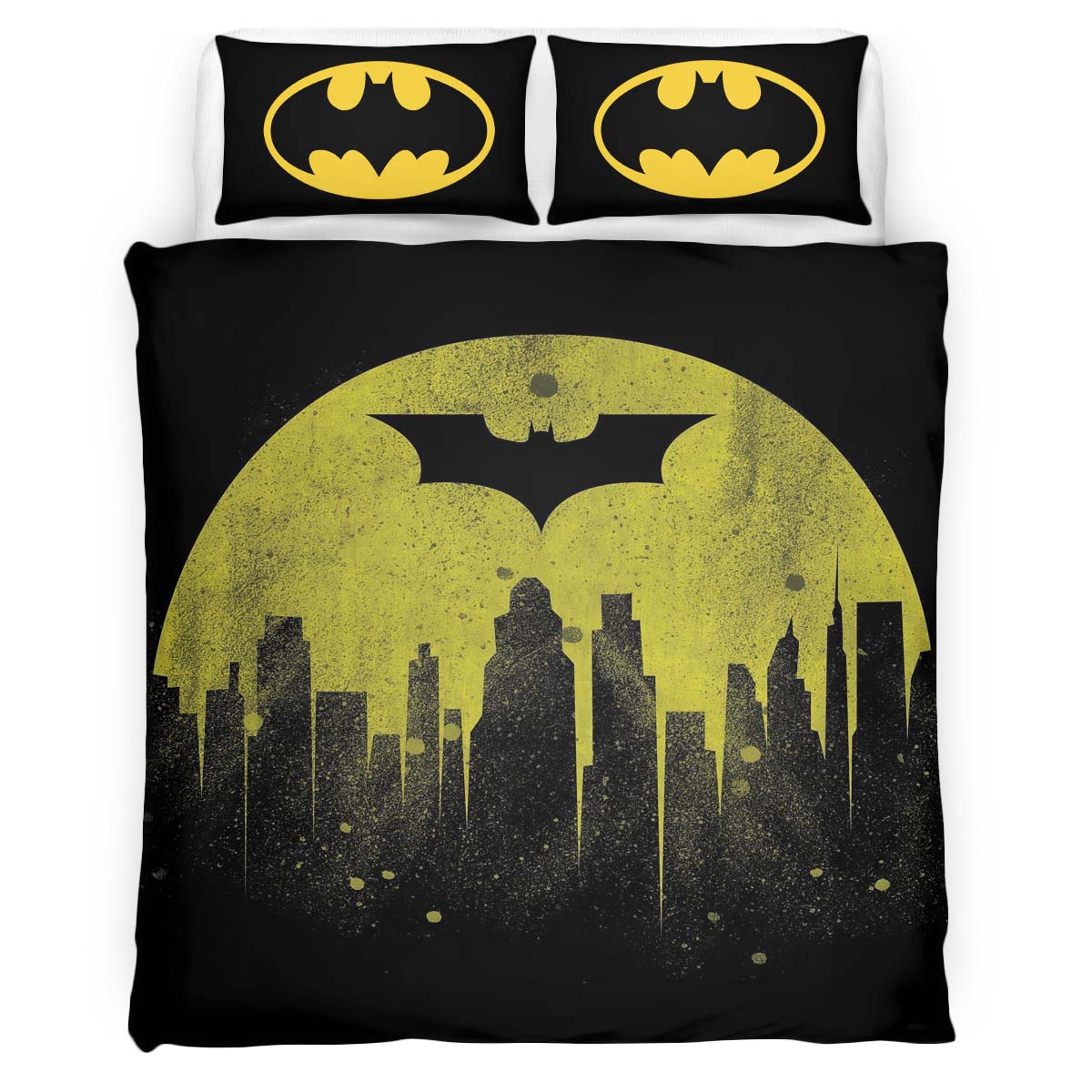 Housse De Couette Batman Logo classique jaune et noir Parure de lit Ensemble De Literie