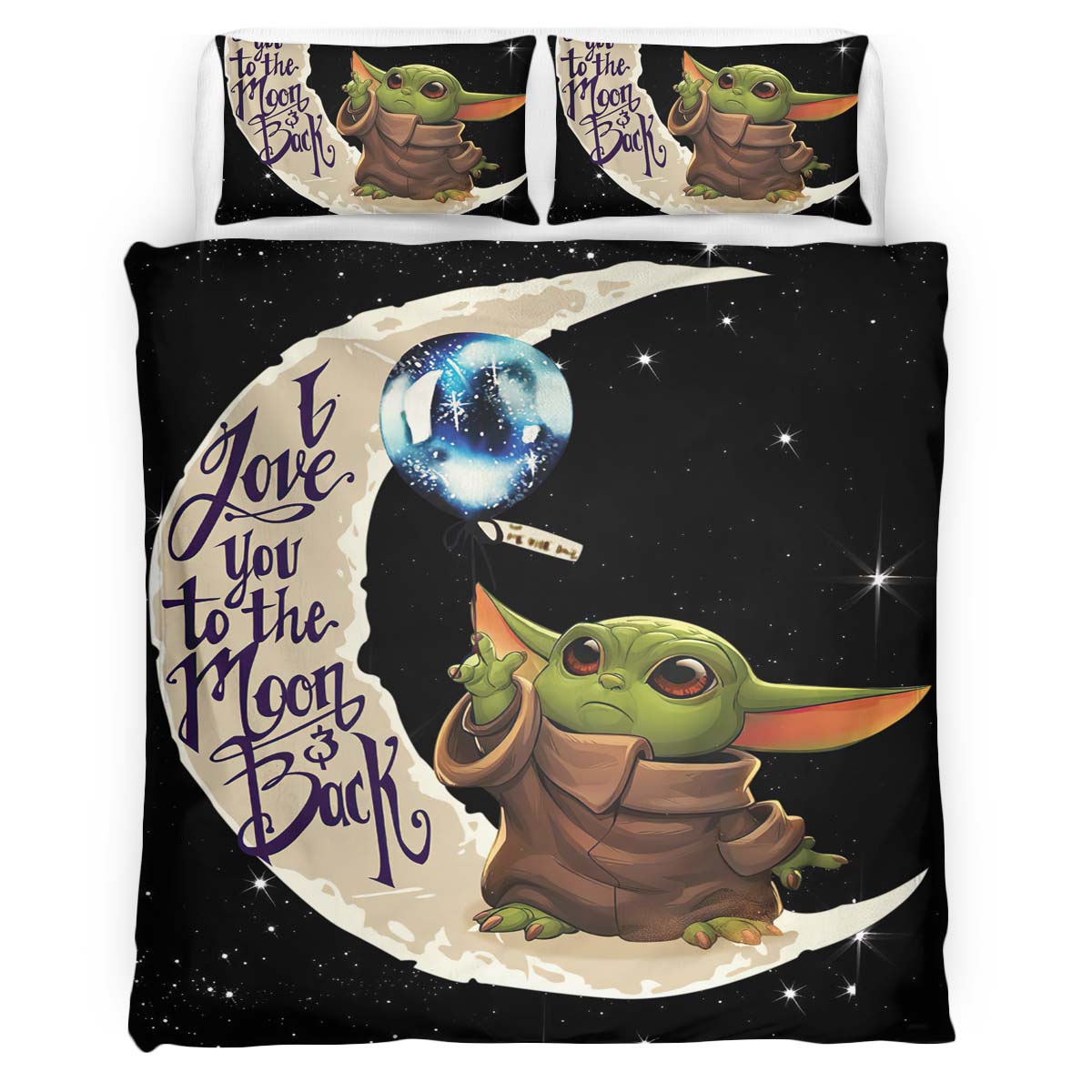 Housse De Couette Bébé Yoda Je t’aime jusqu’à la lune et retour Parure de lit Ensemble De Literie