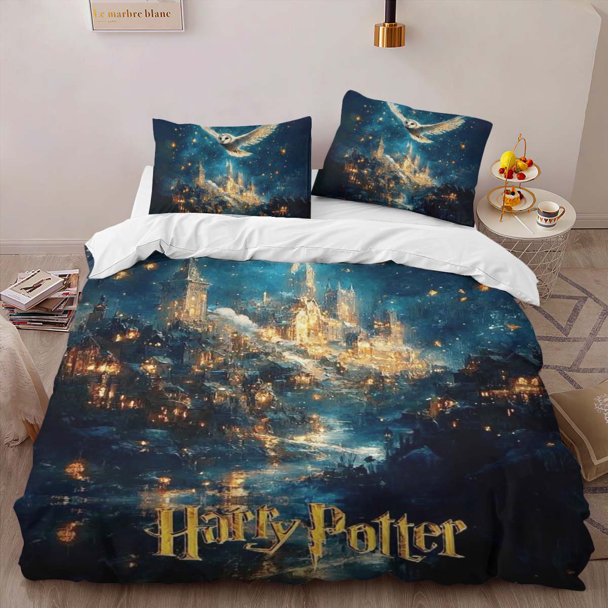 Housse De Couette Chouette et École de Poudlard Harry Potter Parure de lit Ensemble De Literie