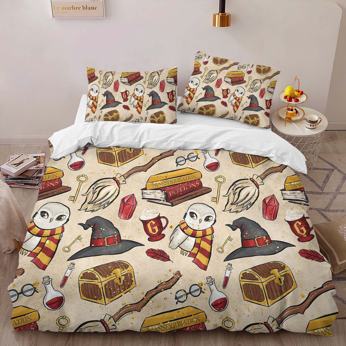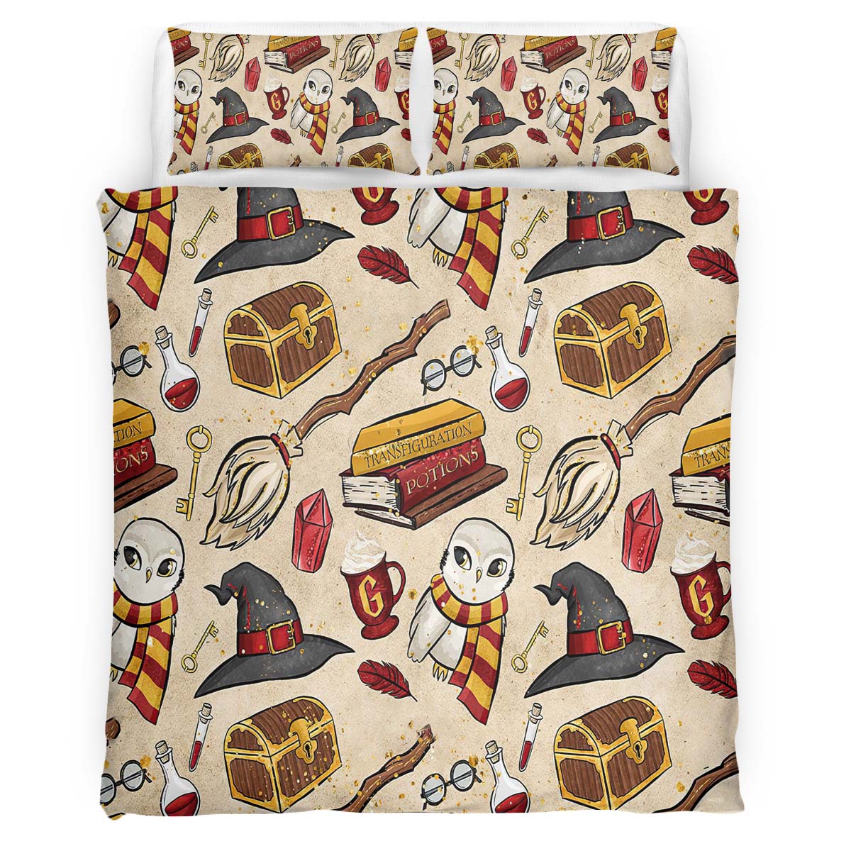 Housse De Couette Objets Magiques Harry Potter – Choixpeau, Quai 9¾, Vif d’Or Parure de lit Ensemble De Literie