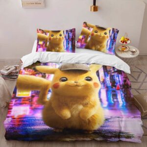 Housse De Couette Détective Pikachu Parure de lit Ensemble De Literie