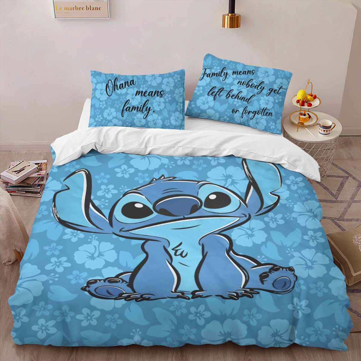 Housse De Couette « Ohana signifie famille, personne n’est laissé de côté » Lilo & Stitch Parure de lit Ensemble De Literie