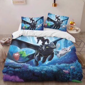 Housse De Couette Dragons – Krokmou & Furie Éclair 7 Parure de lit Ensemble De Literie