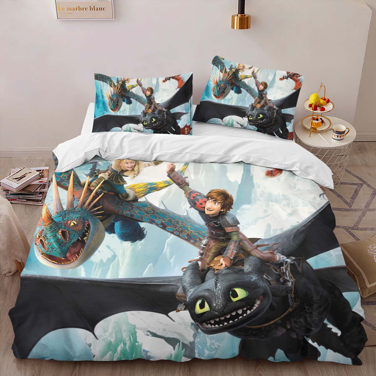 Housse De Couette Dragons – Krokmou & Furie Éclair 3 Parure de lit Ensemble De Literie