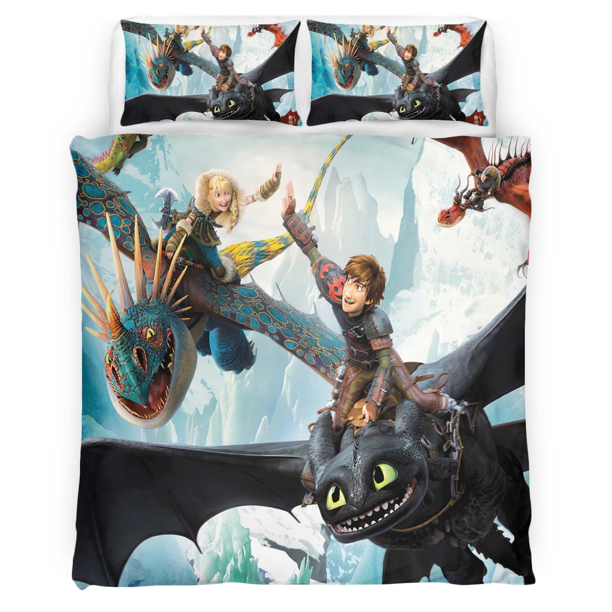 Housse De Couette Dragons Tous les personnages 2 Parure de lit Ensemble De Literie