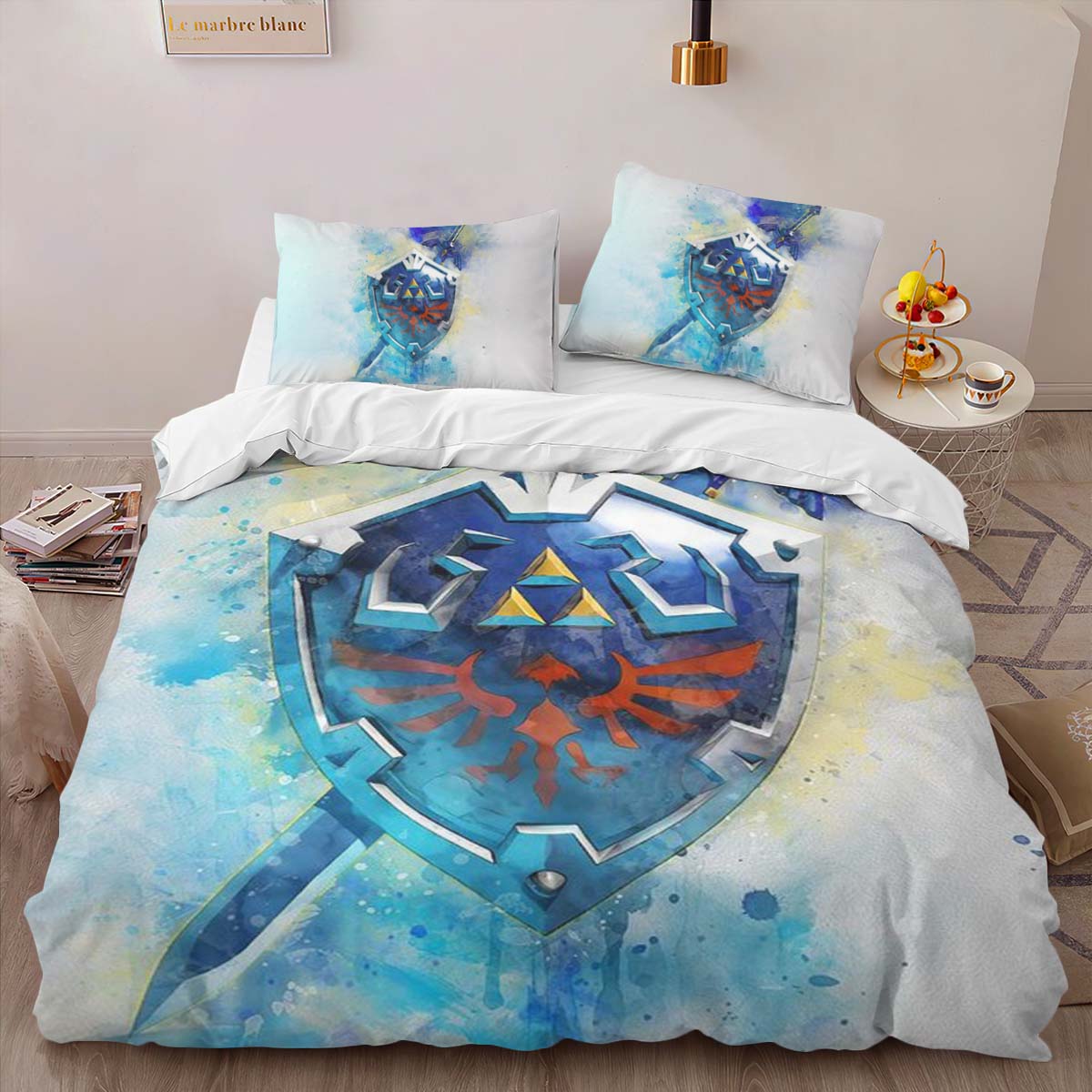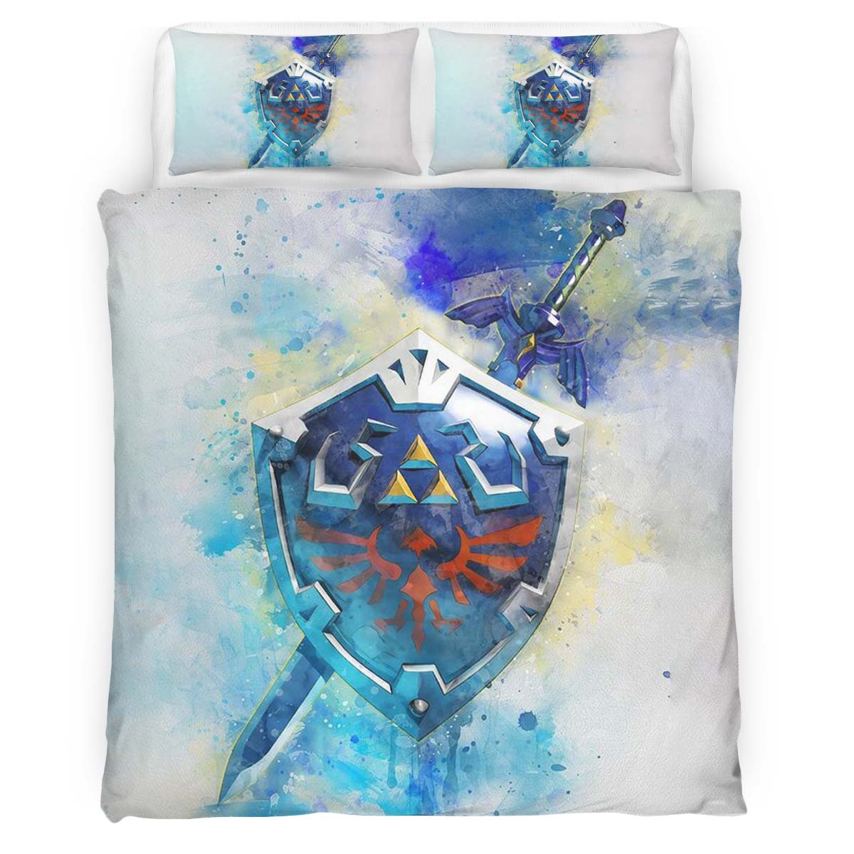 Housse De Couette Épée de Légende et Bouclier Hylien Zelda 3 Parure de lit Ensemble De Literie