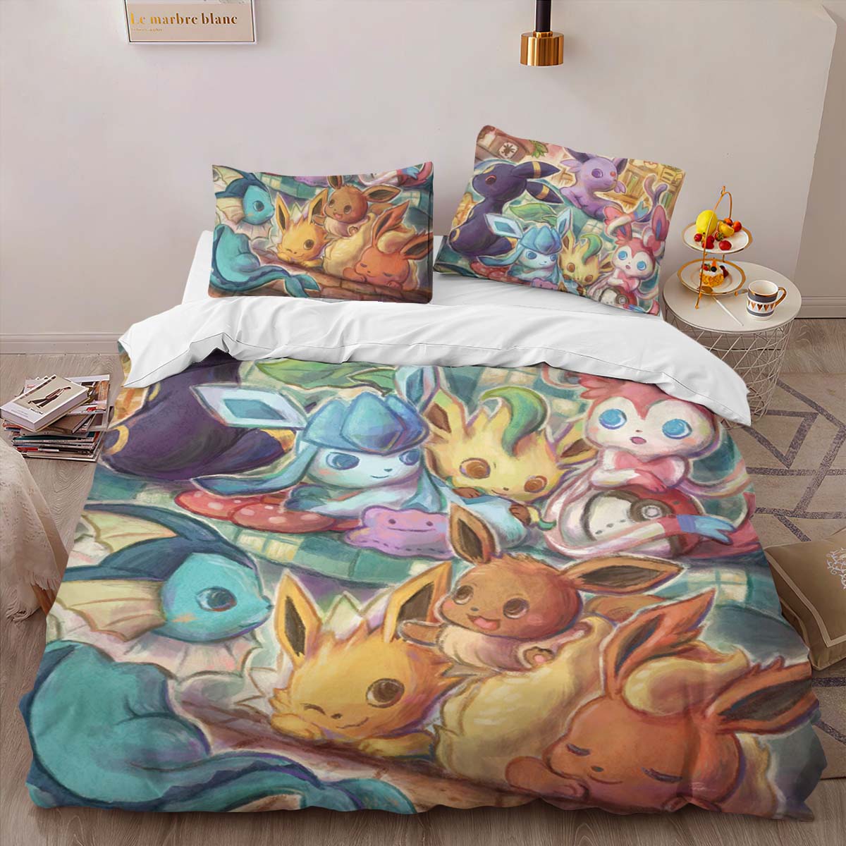 Housse De Couette Toutes les évolutions d’Évoli Pokémon sur la lune Parure de lit Ensemble De Literie