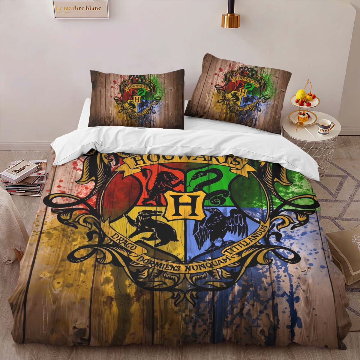 Housse De Couette Harry Potter École de Poudlard et les Quatre Maisons Parure de lit Ensemble De Literie