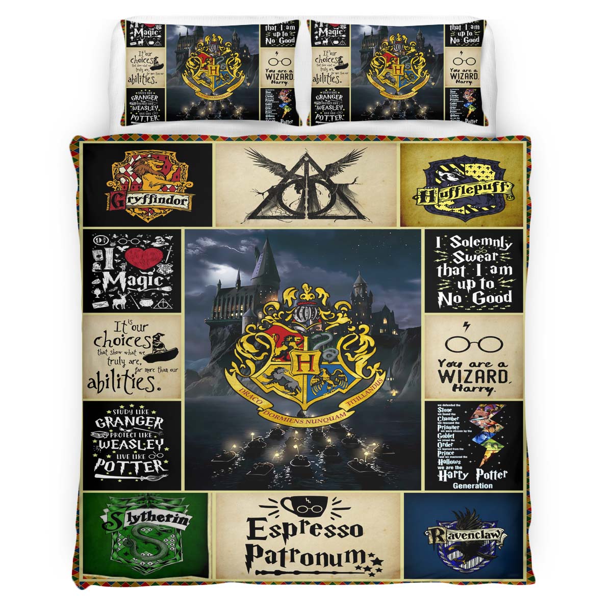 Housse De Couette Symboles Harry Potter – Reliques de la Mort, Choixpeau, Always Parure de lit Ensemble De Literie