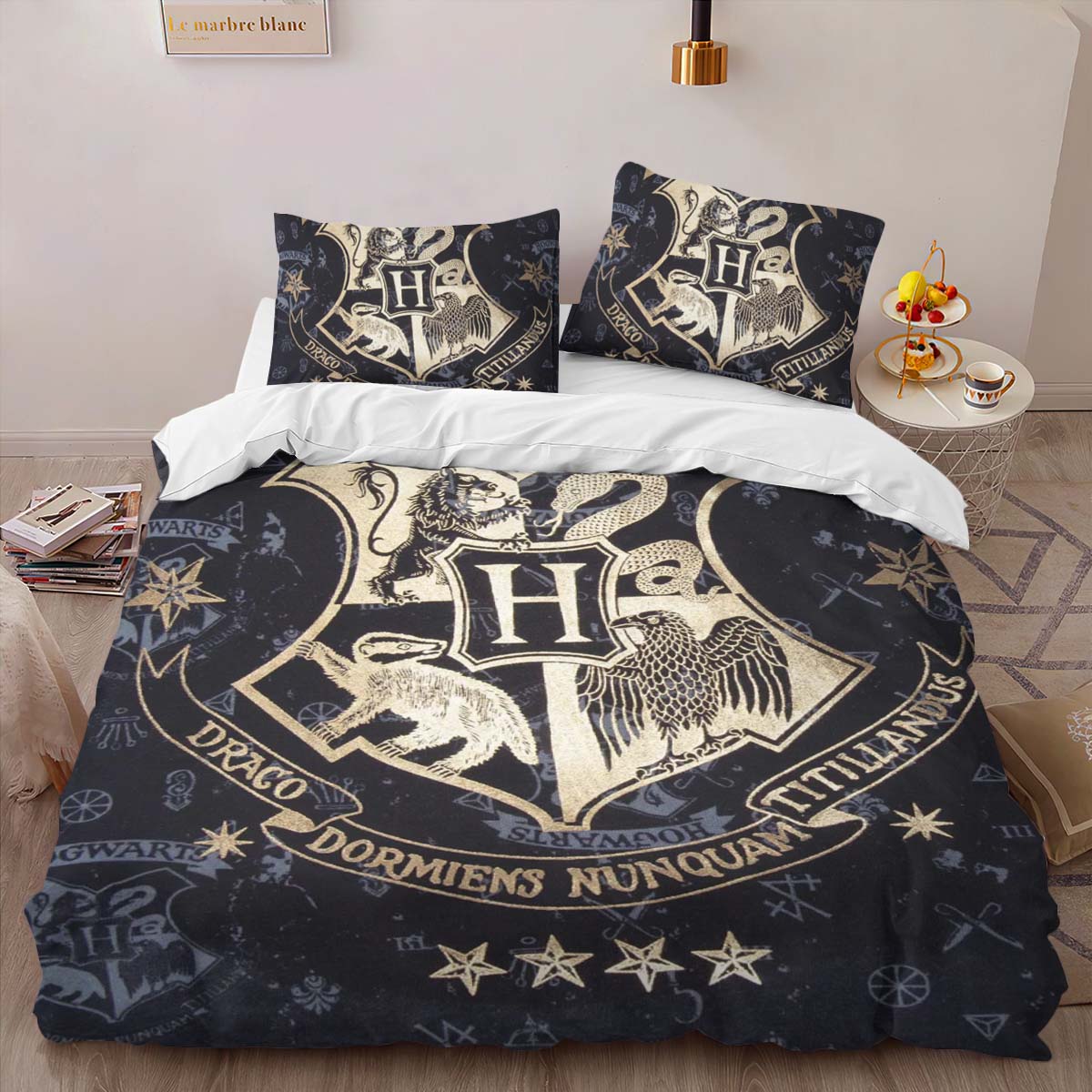 Housse De Couette Logo École de Poudlard Harry Potter Art Parure de lit Ensemble De Literie