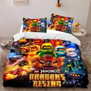 Housse De Couette Ninjago – Tous les Personnages Dragons Rising Parure de lit Ensemble De Literie