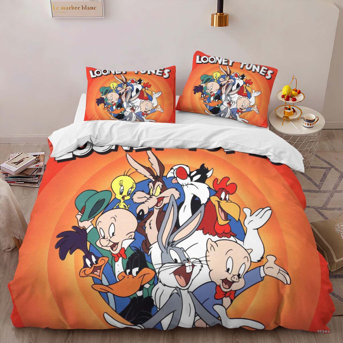 Housse De Couette Bugs Bunny et Daffy Duck Parure de lit Ensemble De Literie