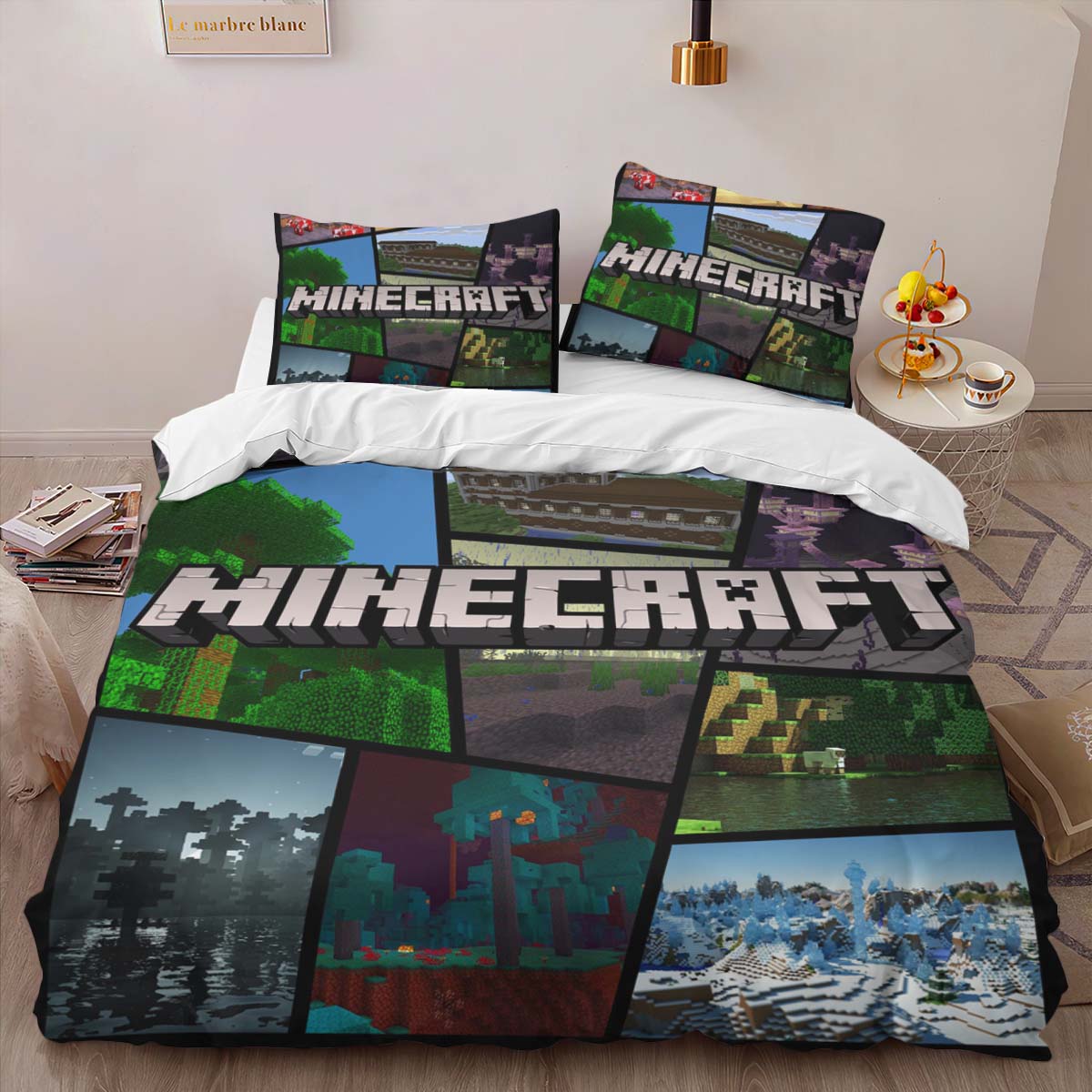 Housse De Couette Minecraft Biomes Plaines Toundra Nether Parure de lit Ensemble De Literie