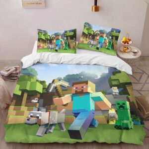 Housse De Couette Minecraft Biome Forêt – Steve et Alex Parure de lit Ensemble De Literie