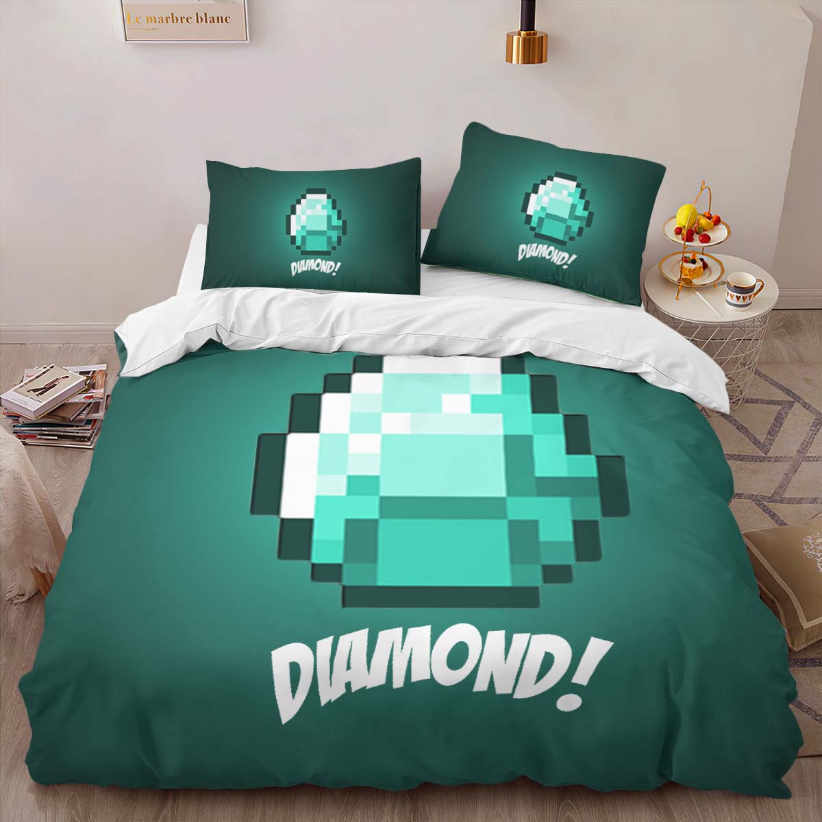Housse De Couette Minecraft Minerai de Diamant Parure de lit Ensemble De Literie