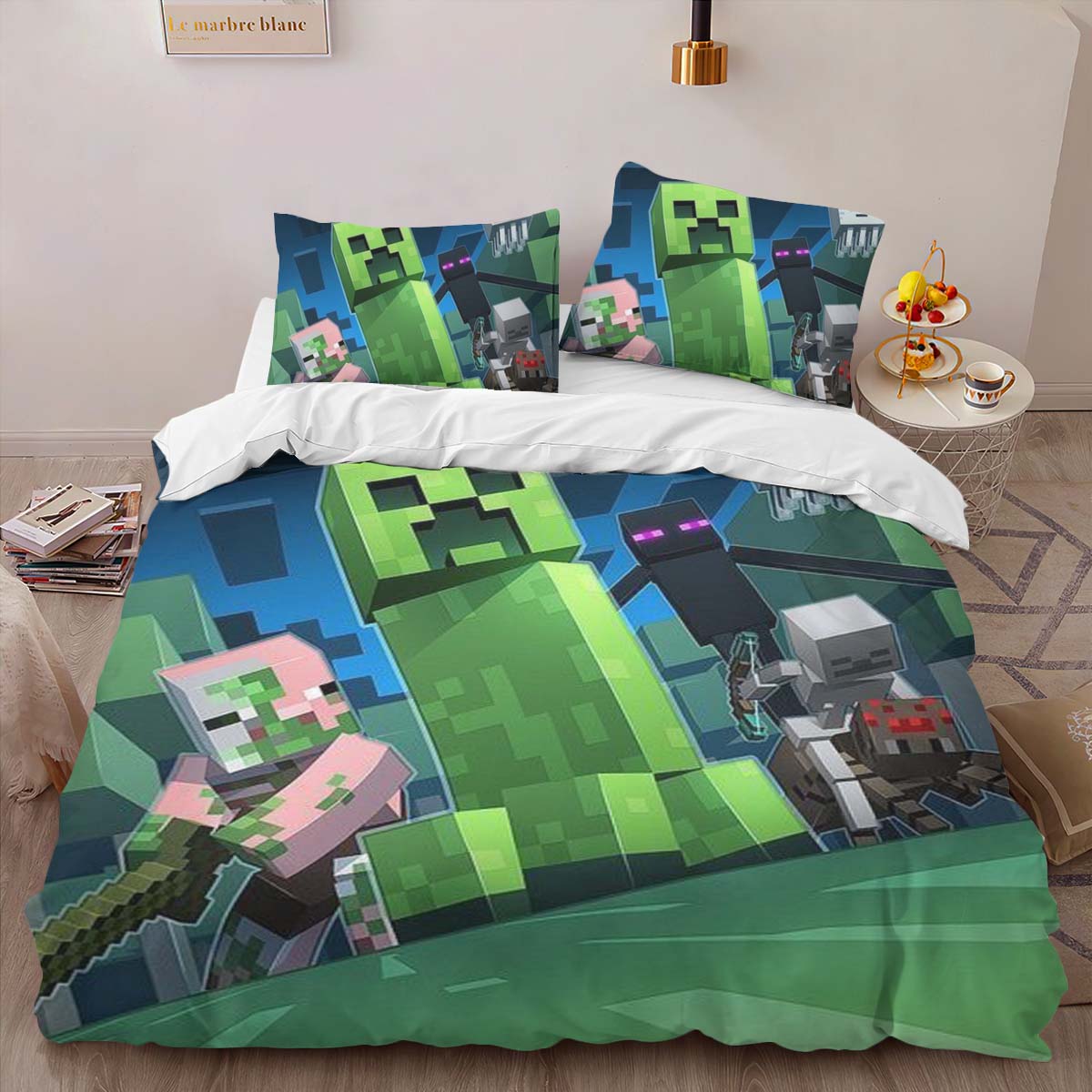 Housse De Couette Minecraft Steve sous l’Océan Parure de lit Ensemble De Literie