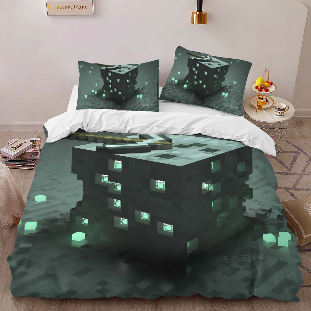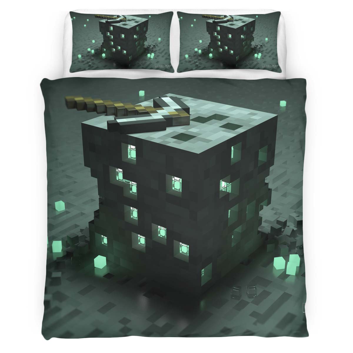 Housse De Couette Minecraft Minerai d’Émeraude Parure de lit Ensemble De Literie