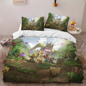 Housse De Couette Minecraft Biome Forêt – Steve et Alex Parure de lit Ensemble De Literie