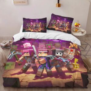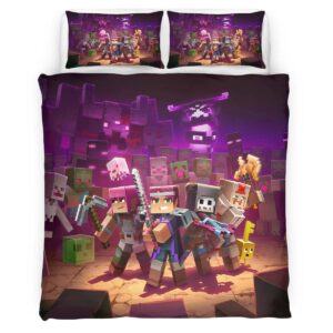 Housse De Couette Minecraft Personnages dans le Biome du Nether Parure de lit Ensemble De Literie