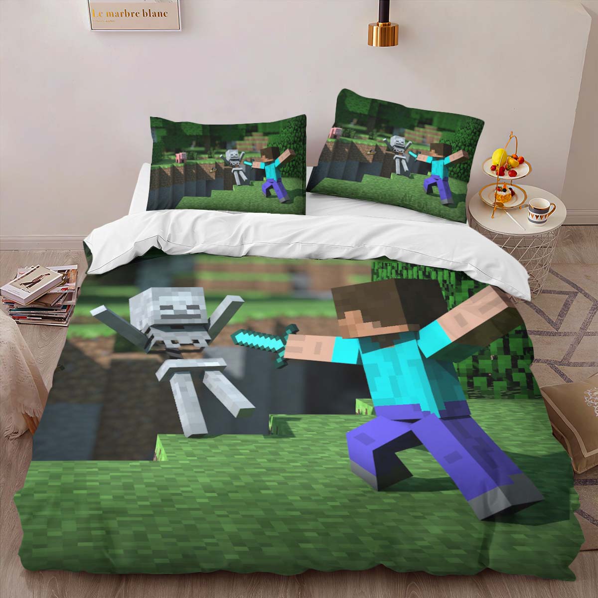 Housse De Couette Minecraft Steve combat les forces ennemies Parure de lit Ensemble De Literie