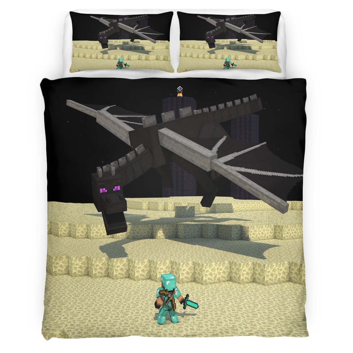 Housse De Couette Minecraft Steve combat Enderman et Ender Dragon Parure de lit Ensemble De Literie