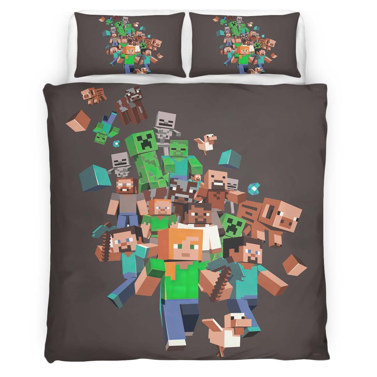 Housse De Couette Minecraft Tous les Personnages Steve Creeper Cochon Zombie Villageois Parure de lit Ensemble De Literie