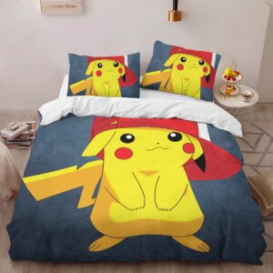 Housse De Couette Pikachu avec chapeau mignon Parure de lit Ensemble De Literie