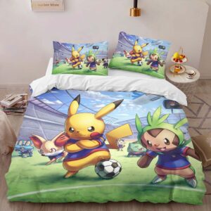 Housse De Couette Pikachu Football Pokémon 2 Parure de lit Ensemble De Literie