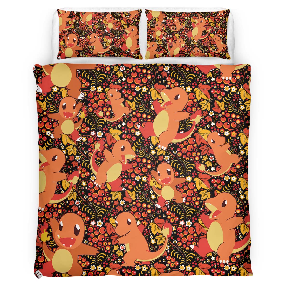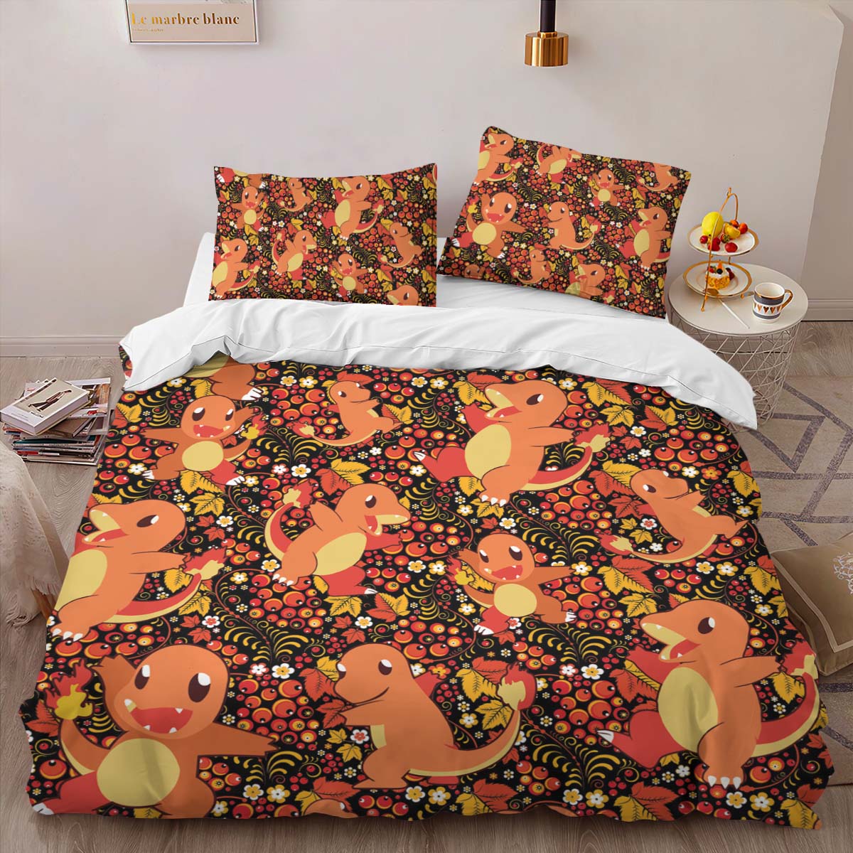 Housse De Couette Salamèche Feu Pokémon Parure de lit Ensemble De Literie