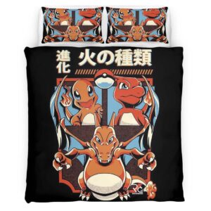 Housse De Couette Salamèche Reptincel Dracaufeu Feu Pokémon 2 Parure de lit Ensemble De Literie