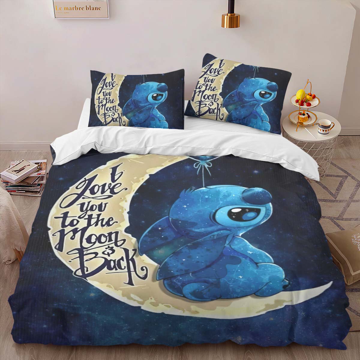 Housse De Couette Stitch « Je t’aime jusqu’à la lune et retour » Parure de lit Ensemble De Literie