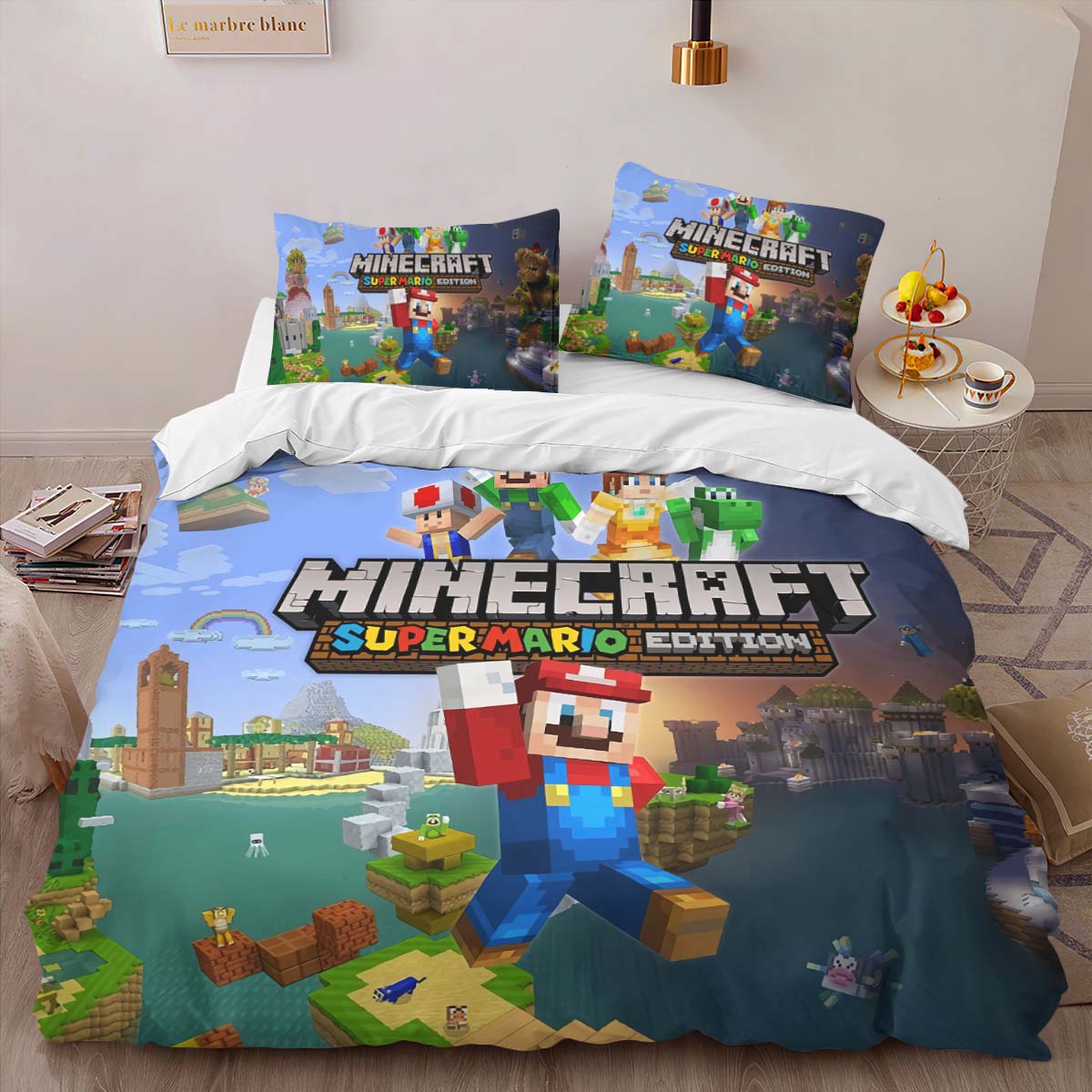 Housse De Couette Super Mario Style Minecraft Parure de lit Ensemble De Literie