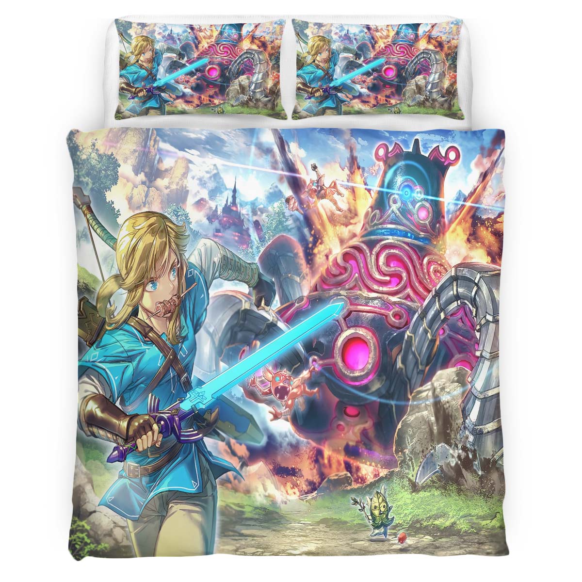 Housse De Couette Link avec Bouclier The Legend of Zelda Parure de lit Ensemble De Literie