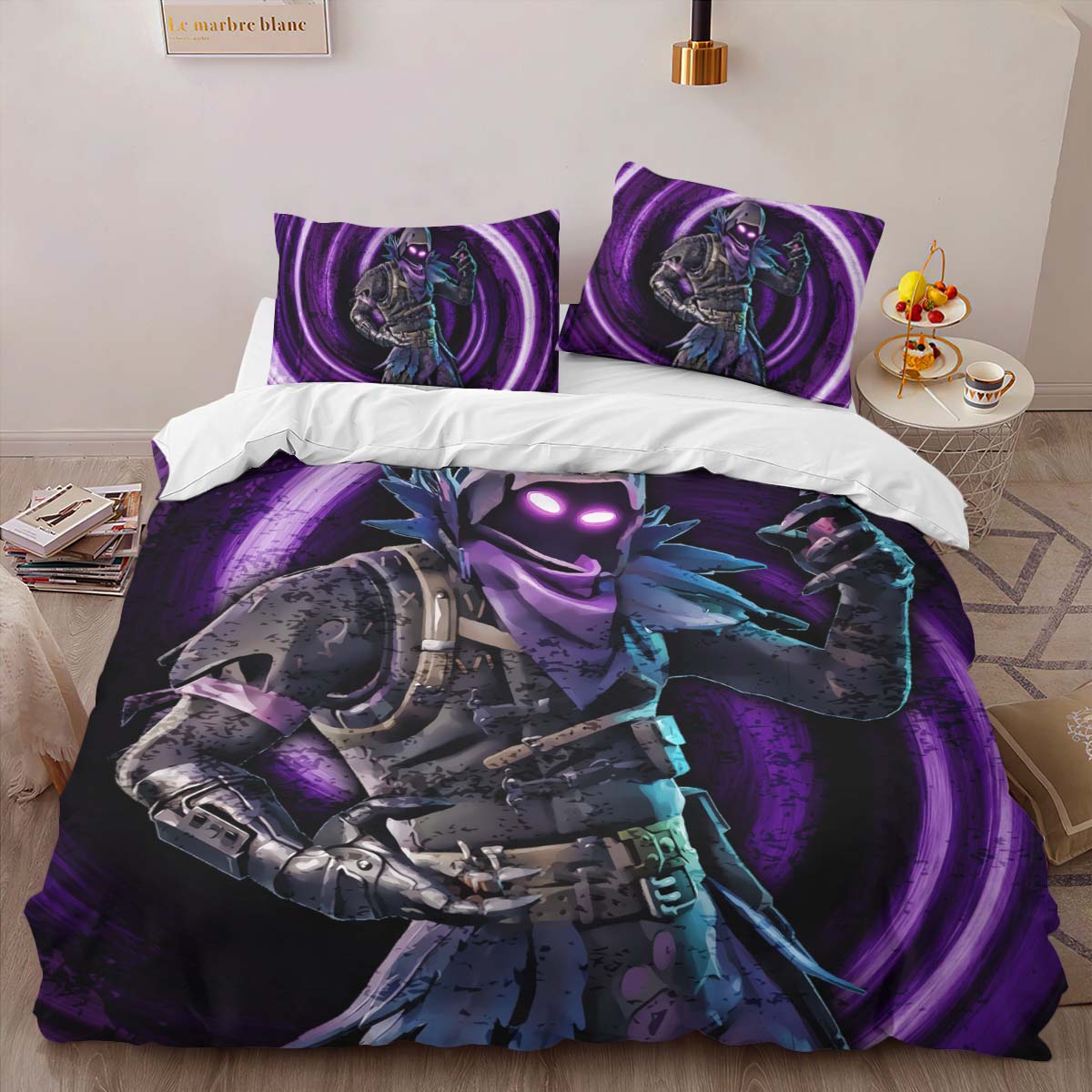 Housse De Couette Raven Violet Néon Fortnite Skin 07 Parure de lit Ensemble De Literie