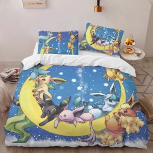 Housse De Couette Toutes les évolutions d’Évoli Pokémon sur la lune Parure de lit Ensemble De Literie