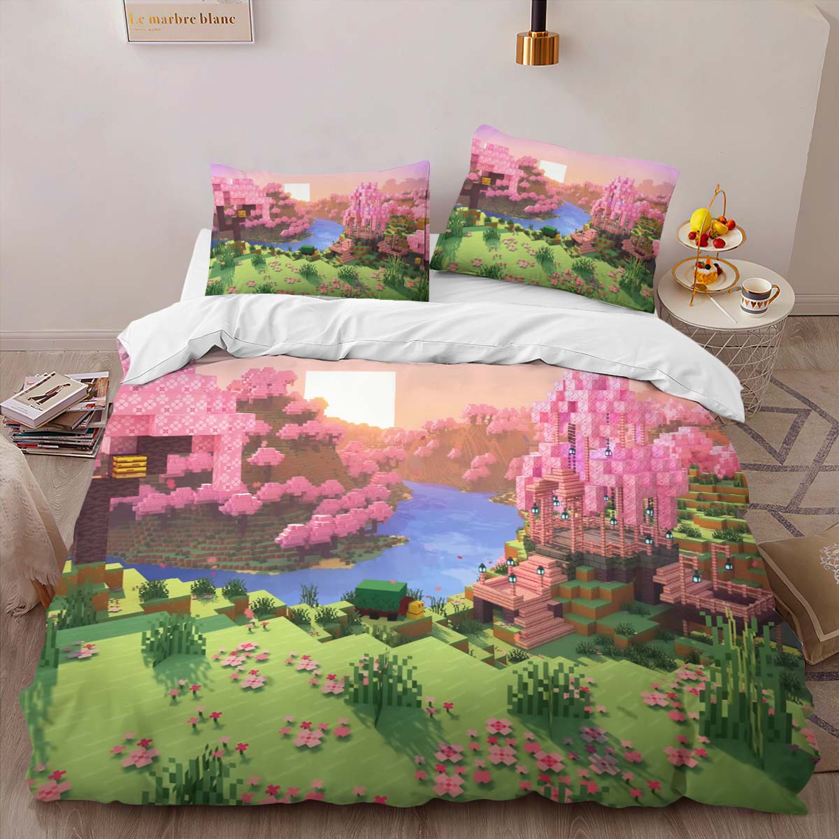 Housse De Couette Vallée de cerisiers biome Minecraft Parure de lit Ensemble De Literie